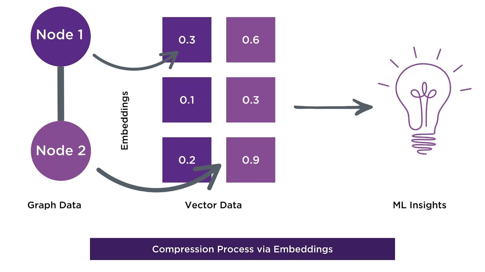 Compression is used to reduce the size, complexity, and redundancy of a graph while ensuring its structure and information are preserved. In traditional ML, dimensionality reduction methods like PCA or feature selection are used to reduce data complexity, but these methods overlook the relational structure between entities. In contrast, graph compression techniques, such as node embeddings, graph pruning, and adjacency matrix compression, preserve the graph’s inherent connections and patterns while simplifying the data. Node embeddings, in particular, are a powerful way to represent nodes as feature-rich vectors, capturing both the attributes of a node and its relational context within the graph.