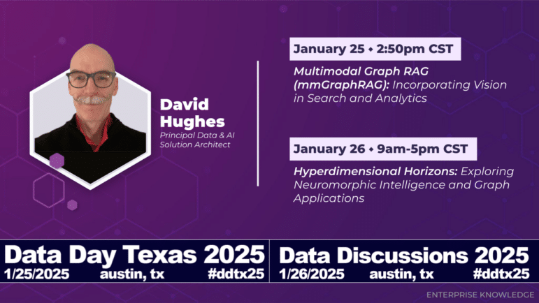 David Hughes, Principal Data & AI Solution Architect at Enterprise Knowledge, will be presenting on an underexplored dimension of GraphRAG–the integration of image–in his talk titled “Unleashing the Power of Multimodal GraphRAG: Integrating Image Features for Deeper Insights” at Data Day Texas 2025 in Austin, TX on Saturday, January 25th at 2:50 CST.